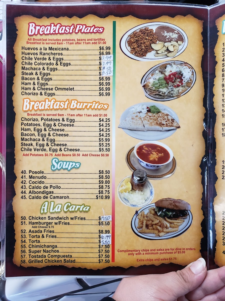 Seafood enthusiasts will delight in selections like Camarones A La Plancha and Camarones A La Diabla, all beautifully seasoned at $10.99. For those craving warmth, the Pozole and Menudo soups, both at $6.25, offer hearty comfort that’s perfect for gatherings or a cozy meal.